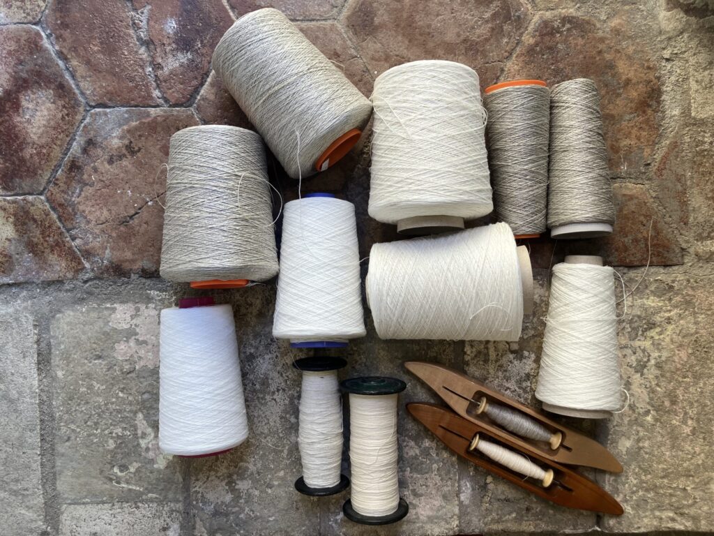 Modern weaving is tied to cotton. However, the history of cotton is inseparable from the history of human slavery, imperialism, and ongoing environmental exploitation. Even if we speak only of current cotton production and the environment, it is damaging enough. From cultivation to processing, modern cotton radically depletes water supplies, while polluting the soil with pesticides and chemical dyes. Thus for historical and environmental reasons I do not use cotton, except re-uses from rewound fabrics.